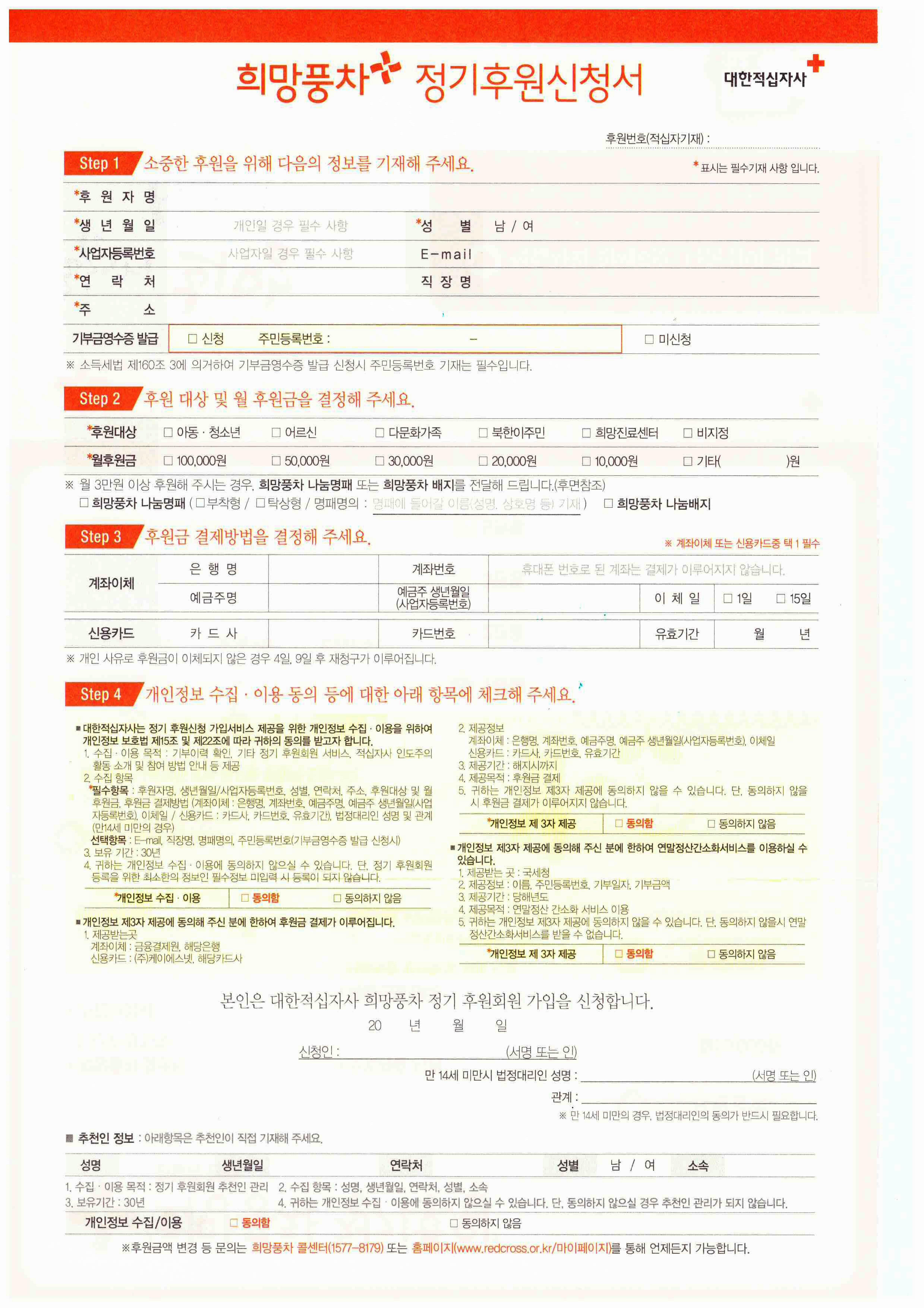 사회봉사인증제(적십자사-전주대) 신청서 양식