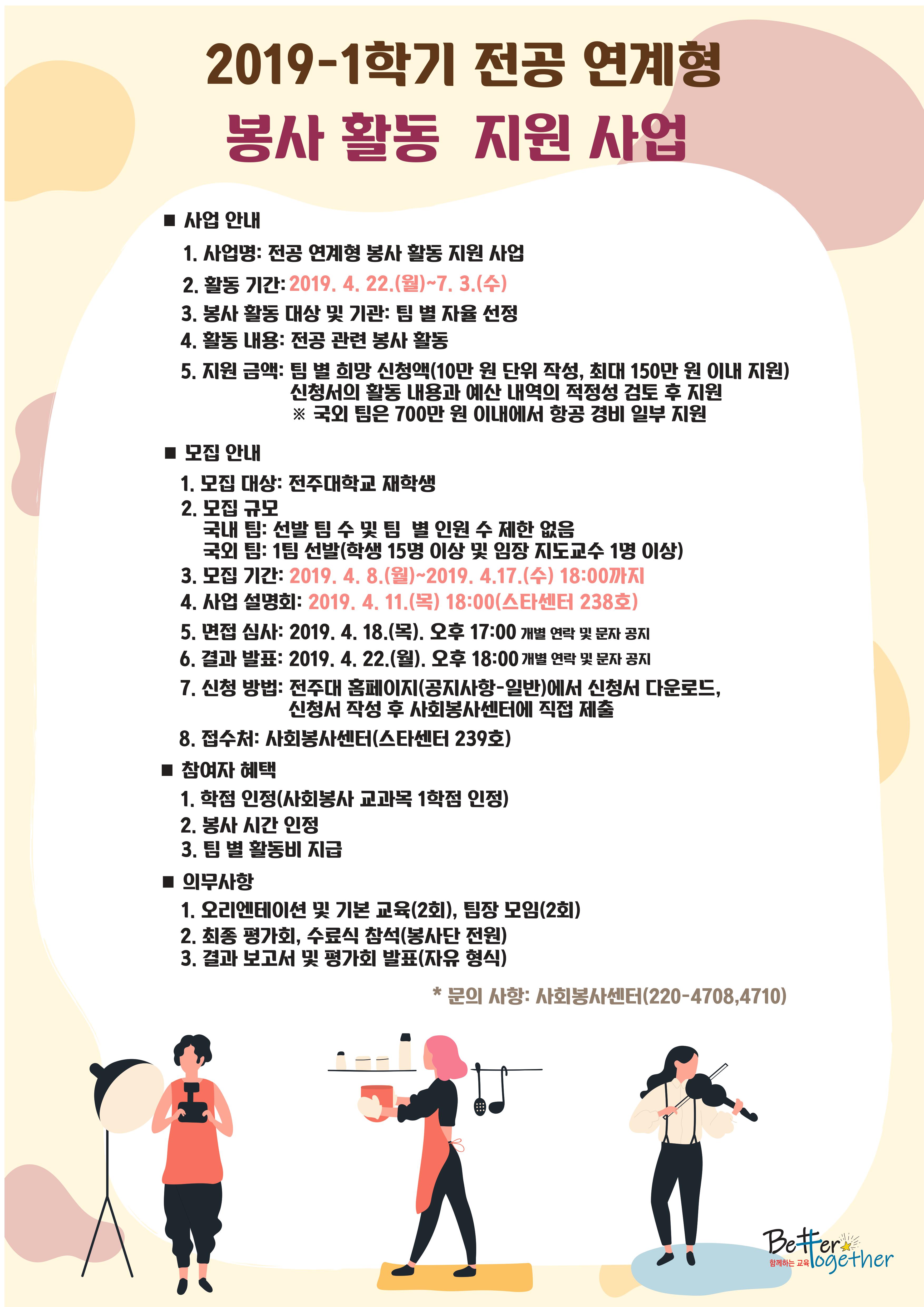 2019학년도 1학기 전공 연계형 봉사활동 지원사업 모집 안내