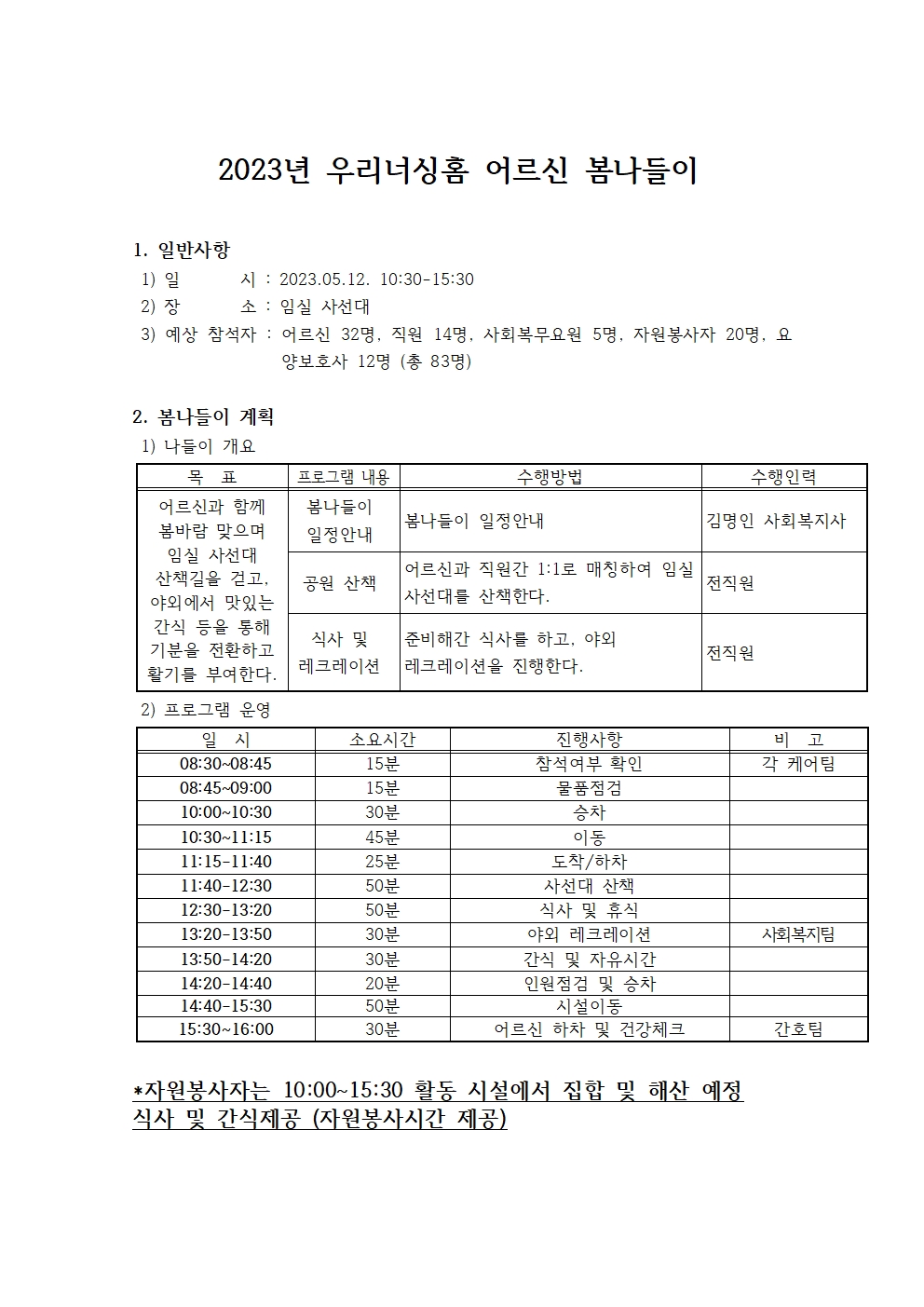 2023년 우리너싱홈 어르신 봄나들이 봉사활동