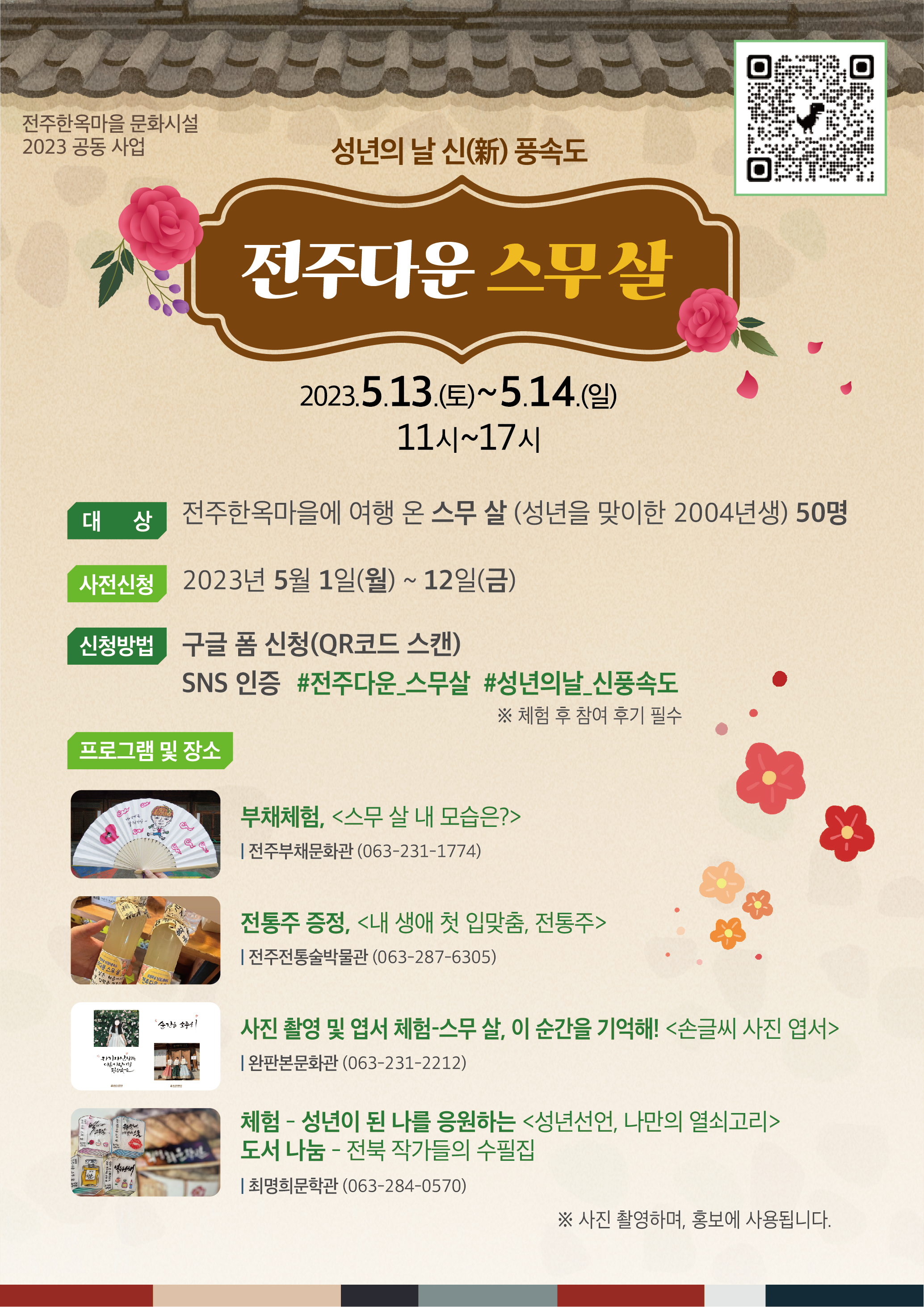 | 9 | 2023 전주 한옥마을 문화시설 공동사업 안내 | 사회봉사센터 | 23-05-09 | 273 |