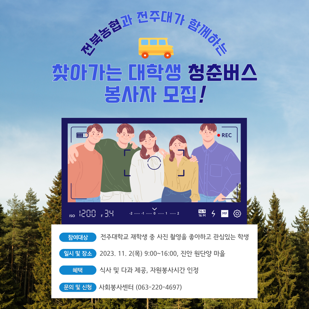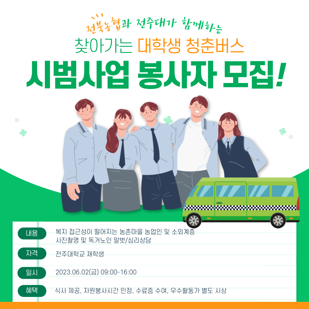 찾아가는 대학생 청춘버스 봉사자 모집 안내